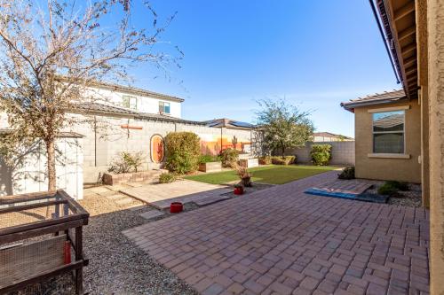 Step outside to a backyard designed for relaxation and enjoyment, featuring a paver patio and walkway, lawn, planter boxes, and a storage shed. Located in a desirable community with stunning views of the White Tank Mountains, close to schools and community parks. A must-see home!