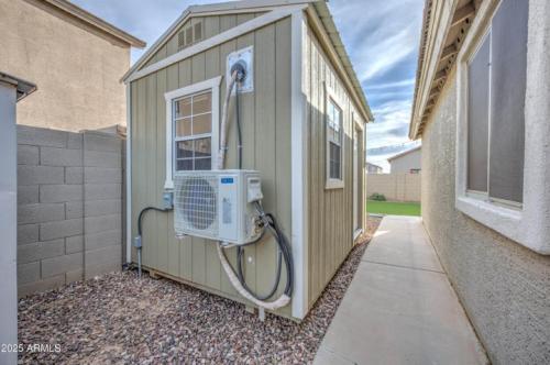 TURN-KEY- pack your bags and move in! You won't want to miss this absolutely stunning, model-perfect home! NEW ROOF! Enjoy the community amenities - pool, GOLF, parks! In addition to the gorgeous indoor features, sellers added the air-conditioned outdoor office space of 96 sq ft. Need another bedroom or craft room? Synthetic front and back yard! No excess water bill. Extended island in your spacious chef's kitchen w/ soft-closed deep cabinetry. Upgrades galore with quartz countertops, backsplash, & all appliances, including fridge and a top-of-the-line washer and dryer, upgraded flooring throughout- no carpet. A list of home features welcomes your review. Nothing to do here but enjoy your new home! The driveway has been professionally cleaned 11/25