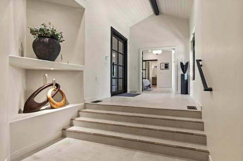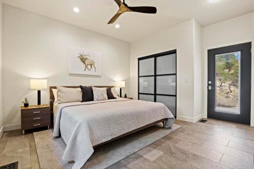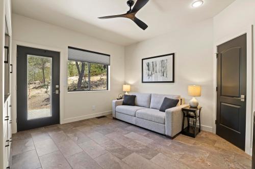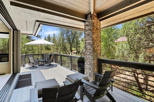 Over $500,000. spent on upgrades and remodel. Sellers may carry. A striking blend of contemporary design and natural serenity located in the prestigious Rim Club. This home has been completely redesigned from the inside out with every cabinet, plumbing fixture and flooring replaced/upgraded. You will notice that every electrical outlet, light switch & light fixture has been replaced. The home was completely stripped and rebuilt with a vision! This home will wow you with the modern details present in every room and finishes you won't find in most homes in The Rim. Surrounded by native trees and granite boulders, the 2,935 sq ft residence features 3 bedrooms, 4 baths, an elevator, and seamless indoor-outdoor flow--with a private deck or patio off every bedroom. Every bedroom has its own private ensuite. As you approach the custom metal and glass pivot front door, your eyes are drawn to the Lyman Whitaker Ponderosa Copper kinetic wind sculpture gently turning in the breeze--a glimpse of the artistic touches woven throughout the home. Inside, clean lines, soaring ceilings, and walls of windows frame the tranquil landscape, while curated finishes reflect a gallery-like aesthetic. Geometric details, statement lighting, and a sculptural staircase define the open living space. Enjoy the sleek 50' electric fireplace set into the gray stone wall, echoed by an 18-foot stone feature wall in the foyer for striking continuity. The reimagined kitchen and baths showcase custom cabinetry, quartz surfaces, and premium fixtures. Both the primary and master bedroom decks have been rebuilt, and upgrades such as California Closets installations, smart systems, full mechanical updates, and a private elevator offer comfort and quality throughout. The oversized 23' x 23' garage has been fully refinished with a high-performance polyaspartic floor coating by Guardian Garage Floors, freshly painted, and outfitted with custom cabinetry and a built-in workbench-blending durability with design. Tucked across the golf course from the clubhouse with full access to the amenities available at the Mountain Spa & Fitness Center, The Trailhead, and the clubhouses at The Rim and Chaparral Pines.