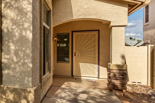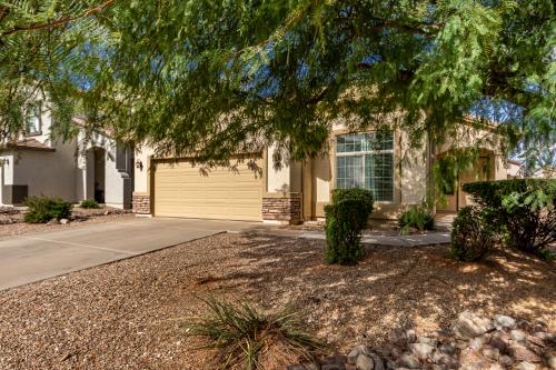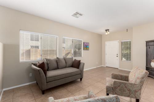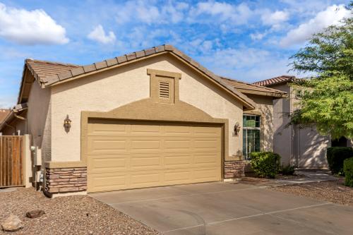 This beautiful single level, split floorplan, 3 bed + den, 2 bath residence in Skyline Ranch is looking for its new owners! Freshly painted inside and out, north/south exposure, great curb appeal, low maintenance landscape, and a 2 car garage are just the beginning. Inside you will find sizeable dining & living areas with tile in all the right places. The eat-in kitchen is open to the family room & comes equipped w/ample cabinetry, a pantry, stainless steel appliances, granite countertops, an island and butler's pantry. The primary suite showcases a full ensuite w/dual sinks , tile shower, garden tub and a walk-in closet. Also included is a nice sized backyard w/a covered patio. The community offers sand volleyball, basketball court and a playground area. This home is a true gem!
