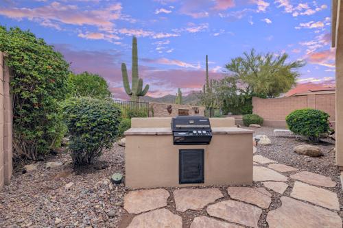 Welcome to this beautifully updated 3-bedroom, 2-bath home located in the highly sought-after gated Anthem Country Club, where country club living meets serene desert beauty. Step inside to find an inviting open layout enhanced by high ceilings and plantation shutters throughout. The elegant see-through fireplace adds warmth and charm to both the living, family room and dining spaces. *Floor Yr Updated 2020, Heating/Cool Yr Updated: 2018, Fully updated Kitchen in 2023* The gourmet kitchen is a true highlight with new cabinets, beautiful granite countertops, stainless steel appliances. Step outside to your own private desert oasis that backs to a desert wash with a covered patio, extended paver patio, tranquil 15-ft water feature, and sweeping desert and mountain views an ideal setting for relaxing evenings or hosting guests.