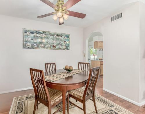 This beautifully updated 2-bedroom, 2-bath townhome offers 1,409 sq. ft. of thoughtfully designed living space, ideal for an active yet relaxed lifestyle. Well-maintained home shows pride of ownership with $65,000+ in improvements!! Remodeled kitchen, engineered hardwood flooring, custom tile, Corian countertops, refaced cabinetry, custom backsplash and upgraded appliances. Additional upgrades include a 2023 water heater with recirculation pump, replaced main sewer line house to street (2025), updated windows, remodeled primary bathroom w walk in shower, updated guest bath, screened AZ room, cobblestone courtyard and upgraded closet design. Large screened-in back patio and large cobblestone front courtyard with private gate. Eat-in kitchen, dining space and spacious living room provide comfortable spaces for both everyday living and entertaining guests. Living room with 3 panel glass doors opens to a private, peaceful backyard patio perfect for morning coffee or unwinding in the evenings.