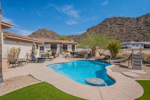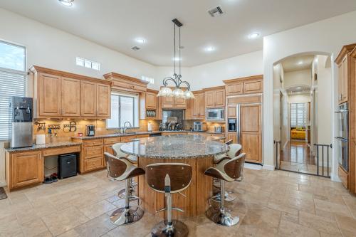 PRICED TO SELL!! NO HOA!! Must see Beautiful Custom Home. 4 Beds and 5 1/2 Baths. Spacious Kitchen with Large Island. Double Ovens & Gas Cooktop. Wine Cooler and Separate Ice Maker. Very Open Floor Plan with Mountain Views. Large Windows with Metal Roller Shades. Full Bath in Garage. 14 Ft. RV Garage. Bonus Room & Separate Den. North Bonus Room has Separate Entry. Pool & Backyard is Perfect for Get Togethers with Family and Friends. Blinds & Shutters throughout Home. Outside Painted 2024. Water Heater 2024.