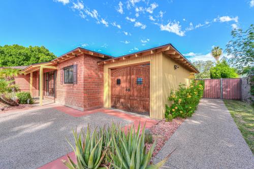 Exquisite Mid-Century Red Brick Gem in the Biltmore Area! 3 Bedroom, 2 Bath, 1 Car Garage, 1377 Square feet Beautifully remodeled to the studs in 2006 and thoughtfully updated again from 2020 to 2025, this home seamlessly blends timeless architecture with modern design. Step inside to discover fresh interior paint, new carpet, and a stunning kitchen featuring quartz countertops and a designer backsplash. Interiors curated by Dwelling, LLC showcase refined finishes and a cohesive aesthetic throughout. Enjoy mature irrigated lawns, custom landscaping, and a newly designed patio with a stylish patio cover—perfect for outdoor living. A custom driveway completes the home's exceptional curb appeal. Located within walking distance to Madison Middle School and minutes from Biltmore Fashion Park.
