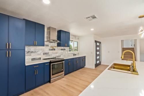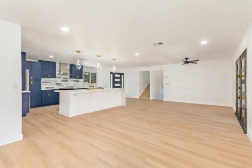 You'll love this BEAUTIFULLY REMODELED home with a SPARKLING POOL, located just minutes from Grand Canyon University and close to schools, shopping, dining, and freeway access! This stunning home blends modern upgrades with everyday comfort. Inside, enjoy fresh neutral tones, new ceiling fans, wood-look flooring, and abundant natural light. The spacious layout includes a versatile downstairs game/media room—ideal for entertaining or relaxing. The kitchen features stainless steel appliances, wine cooler, quartz counters, marble backsplash, blue cabinetry, and a waterfall island. The private main bedroom is downstairs with a walk-in closet and barn door. Enjoy a spacious, backyard with a covered patio, hot tub, and sparkling pool. Move-in ready!