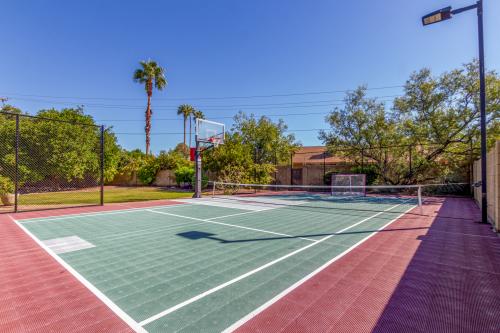 Spacious Single-Level Living in Desirable Moon Valley! Welcome to this beautifully updated single-level home offering 4 bedrooms plus an office, 3.5 bathrooms, and nearly 3,000 sq. ft. of thoughtfully designed living space that feels even larger. Situated on a generous lot, this property is ideal for both relaxation and recreation. Enjoy your own private sport court—perfect for pickleball, basketball, or casual play—and an abundance of mature citrus and fruit trees providing shade and fresh produce year-round. Inside, the updated kitchen shines with granite countertops, stainless steel appliances, and a built-in Sub-Zero refrigerator. The home offers ample storage throughout, newer AC, and a floor plan designed for comfortable everyday living and entertaining. Step outside to the charming front courtyard, complete with a pergola for shade and a tranquil water fountainan inviting space to relax or welcome guests. Located near Moon Valley Country Club, residents can take advantage of affordable membership options featuring golf, tennis, swimming, fitness facilities, restaurants, and more.