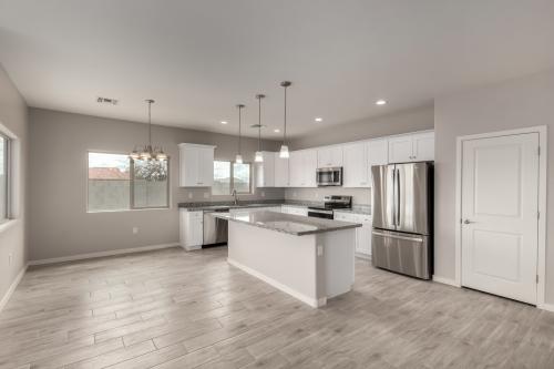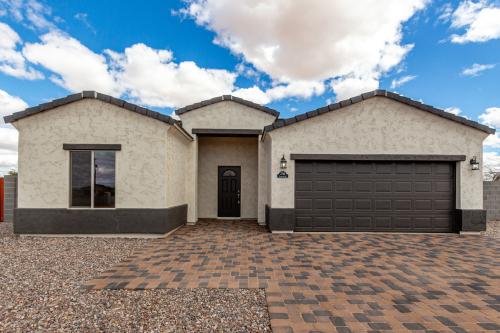 MOVE-IN READY! Stunning brand-new 3-bedroom, 2-bath home situated on a spacious 15,700 sq ft lot with no HOA! This thoughtfully designed home features a bright and open Great Room floorplan with soaring 9 ft ceilings and an oversized 2-car garage. The chef-inspired kitchen is a true highlight, offering a large center island with pendant lighting, granite countertops, stainless steel appliances (range/oven, microwave, refrigerator, and dishwasher), and two pantries for plenty of storage. The split layout provides privacy, with the spacious Primary Suite offering a walk-in closet, double sink vanity, and a beautifully tiled designer shower. Bedrooms 2 and 3 are ideally located on the opposite side of the home with a well-appointed guest bathroom in between. Additional upgrades include ceramic tile flooring throughout with carpeted bedrooms, recessed lighting in the living and kitchen areas, modern ceiling fans, upgraded fixtures, and two-tone interior paint. Outside, enjoy the block-fenced yard, paved driveway, and a convenient drive-through RV gate, perfect for extra parking or recreational toys. Home is under construction and the estimated completion is August 2025. Photos shown are of a similar home; actual finishes and color scheme may vary. Don't miss your chance to own this exceptional home in a growing area!