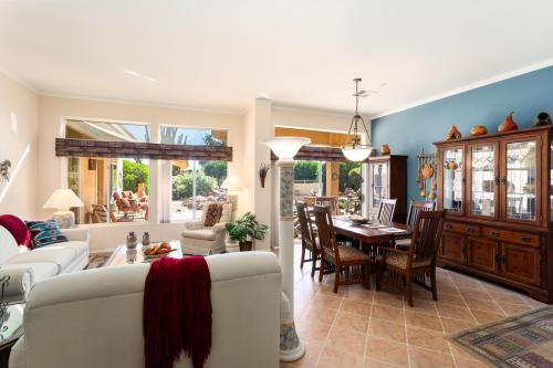 The private backyard oasis will WOW you with a private spool, attached casita and perfect patio. The spool is a cross between a pool and a spa with a beautiful water fall. The primary bedroom is expanded and opens to the back patio. The kitchen was updated in 2015,16, SS appliances, granite, refinished cabinets. The AZ room has a beautiful media wall with floating shelves, fireplace. and the TV stays. You'll love the crown molding. The den/office and hobby room both have built in desks. The second bedroom has a vaulted ceiling. The 2 car garage with golf cart garage has a separate cooling unit, walk out door, Kinetico soft water system. The living/dining area is light and bright and looks to the back oasis. Fantastic curb appleal on a cul de sac street with lush, mature landscaping.