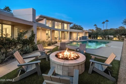 Located on a quiet N/S cul-de-sac along the Shea Corridor and just steps from the Phoenix Mountain Preserve, this stunning contemporary estate offers more than 4,000 sq ft of modern living. Designed for both comfort and style, the versatile split floor plan includes 4 bedrooms and an office. The current owners utilize it as a 3-bedroom home with a large bonus room and den, and the layout can also be reconfigured to accommodate up to 5 bedrooms. Inside, sleek finishes, abundant natural light, and open-concept living spaces create an inviting atmosphere ideal for both everyday living and entertaining. The chef's kitchen flows seamlessly into the main living area, while multiple sliders open to the resort-style backyard and sparkling diving pool. A private hallway leads to the primary suite, a true retreat featuring wall-to-wall windows framing peaceful desert views, a gorgeous spa-quality bathroom, and an oversized custom closet. The expansive outdoor oasis, fully remodeled in 2022/2023, boasts new lush landscaping, premium turf, a built-in BBQ and bar, a large gathering fire pit, and multiple areas for lounging and dining. Whether relaxing poolside, entertaining under the stars, or enjoying tranquil desert evenings, this backyard delivers an ideal blend of privacy, function, and beauty. Additional highlights include an extended 3-car garage, smart lighting, and a premier location close to the shops at Tatum & Shea, the newly redeveloped PV mall, Hwy 51, and within the boundaries of the highly coveted 3 Cs of the Scottsdale School District: Cherokee, Cocopah, and Chaparral. This home perfectly balances luxury, livability, and an unbeatable location.