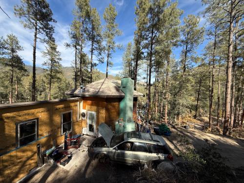 A work in progress, finish this unique one of a kind cabin up in Crown King, AZ. Located close to town in the neighborhood behind the Saloon. This potential 2 bedroom, 2 bathroom cabin has had most of the hard work completed. Roof, Flooring, Windows, Decks, Doors, Cabinet Frames, Counter Tops, etc. The cabin sits on almost a half acre, and backs up to Forest Preserve. Water comes from Philadelphia Water Company, and Electric is APS. The craftsmanship of the work completed is top notch. This home offers an Octagonal open floor plan with a Loft and Artistic Vaulted Ceiling. The kitchen has been updated with hand crafted Alligator Juniper Cabinets, and Counter Tops It has 2 separate sinks giving you a prep area, and a cleaning area. The Loft Bedroom adds Character and a Style Step outside to the balcony or deck to soak in the breathtaking views that are yours to enjoy every day. The potential for personal touches give you an exciting opportunity to truly make this space your own. Embrace this mountain lifestyle and make this haven your sanctuary. Schedule a tour today - it's your turn to come home to Crown King.
