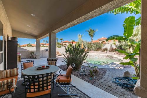 A rare, one-of-a-kind offering in the prestigious Scottsdale Ranch community, this semi-custom residence, one of the last homes to be built in the Ranch, exemplifies luxury desert living at its finest. Thoughtfully designed and well-maintained, this home blends timeless elegance with modern comfort across a spacious floor plan featuring five bedrooms plus a dedicated office, perfect for a multi-generational household. The gourmet chef's kitchen showcases a six-burner gas cooktop, premium appliances, and abundant counter space, ideal for both intimate dinners and grand entertaining. Multiple living areas flow seamlessly to the outdoor retreat, where a resort-style pool and spa invite relaxation beneath the Arizona sun. A private sauna provides a spa-like escape within the comfort of your own home. Recent upgrades include 3 newer AC units and a newer roof with a transferable warranty, ensuring both peace of mind and long-term value. Enjoy the new, neutral colored paint throughout the interior, which leaves one less thing to worry about! The brand new epoxy floor in the garage gives it a fresh look. Nestled within the coveted lake community of Scottsdale Ranch, residents enjoy exclusive access to boating, kayaking, and fishing, as well as a calendar of neighborhood clubs and social events. All this, just moments from world-class dining, premier golf courses, and upscale entertainment. This is more than a home, it's a lifestyle. Discover the rare blend of sophistication, comfort, and resort-style living that defines Scottsdale Ranch.