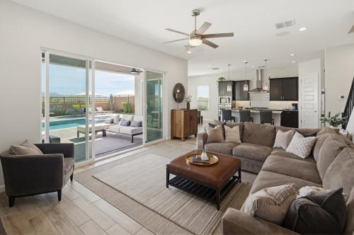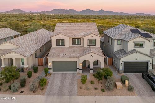 This stunning 2024-built home showcases the popular DR Horton 'Crow' floor plan in the highly coveted Talinn community, one of the premier neighborhoods in Desert Ridge. Perfectly positioned on a premium view lot backing pristine state land, the property offers unobstructed desert privacy and breathtaking McDowell Mountain views. The east-facing backyard captures spectacular Arizona sunrises and glowing mountain sunsets and is designed for true resort-style living. Enjoy a newly installed heated pebble tec pool and spa with Pentair automation, in-floor cleaning, custom gas fire pit, view fencing, a private side patio with tranquil fountain, Rachio smart irrigation, and Sunbrella outdoor furnishings. Inside, this 4-bedroom plus den/office home is loaded with upgrades and smart-home eatures, including a Rinnai tankless water heater, Envirotec water softener, reverse osmosis system, Cox fiber internet, ADT security with Google Home integration, Google doorbell and cameras, Z-Wave smart controls, Hunter ceiling fans, Sonance in-ceiling speakers, stainless steel appliances, Electrolux washer and gas dryer, mounted TVs, and a two-zone HVAC system. The epoxy-coated 3-car tandem garage is equally impressive, featuring a side-by-side refrigerator and two NEMA 14-50 outlets for Level 2 EV charging.