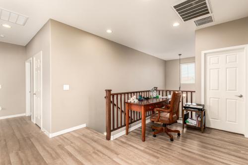 AMAZING 4 BEDROOM, 3 BATH HOME WITH HEATED PEBBLESHEEN POOL! Welcome to your dream home! This stunning property features 4 bedrooms plus a flex space upstairs that can serve as a 2nd loft, den, game room, or converted 5th bedroom. Enjoy low energy costs with leased solar panels—the average electric bill is only around $20/month! Inside, you'll find a bright, open-concept layout with: guest bedroom and full bath downstairs, new luxury vinyl plank flooring, gorgeous kitchen with granite countertops, tile backsplash, upgraded cabinets with crown molding, butler's pantry, high ceilings, upgraded staircase, upstairs laundry room, huge primary suite with two walk-in closets, water softener, R/O system, and extended length garage (26 feet!). Washer/Dryer/Refrigerator included! Step outside to your private backyard oasis featuring a heated, self-cleaning PebbleSheen pool, travertine deck, covered patio, and putting green for fun and relaxation. All this in a prime location near shopping, schools, and freeways! Must see!