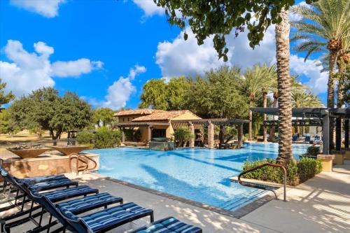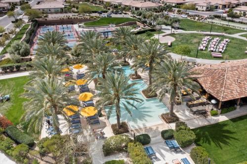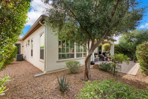 The Almanac says snow is on the way... but not for you! After years of hard work, it's time to trade shovels for sunshine and start living the resort lifestyle you've earned. Encanterra delivers the prestige and amenities of a $1M+ community—without the overwhelming price tag. Imagine mornings at the heated pools, afternoons at the spa or on the pickleball courts, and evenings dining at the Clubhouse with chef-inspired menus or enjoying wine tastings and concerts on the lawn. With fitness classes, tennis, concierge services, and endless social clubs, every day feels like vacation.This move-in-ready home is designed for seamless indoor/outdoor living, featuring GE Monogram appliances, plantation shutters, and even an extra golf cart garage. Washer, dryer, and refrigerator are included.