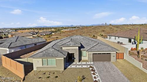 What an incredible premium hillside lot in the beautiful Whispering Hills neighborhood at the base of South Mountain! This Pinnacle Floorplan has over 3600 SF w/4 Bedrooms & 3.5 Bathrooms. Split Bdrms & Home Office. Seller paid for all the right PREMIUM features... Soaring 12' ceiling w/CORNER Sliding Glass Door out to patio, Modern Iron Front Door, Added Exercise/Bonus Rm, Upgraded Flooring, Custom Tile Master Shower w/RainCan Head & Frameless Walk In enclosure. Gourmet Kitchen includes upgraded Cabinets & Quartz Countertops, Beverage Center, Premium Cafe' GE Appliance Pkg: 36' Gas Cooktop, Double Ovens & Commercial S/S Vent. Champagne Bronze TOUCH Kitchen Faucet & Pot Filler. Baths have Matte Black Fixtures w/raised Vanities & Rectangle sinks for a modern look. Make this your new HOME!