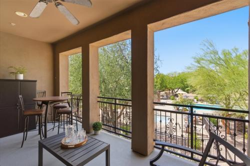 Nestled comfortably within the gated Encore community, this townhome is a showcase of views: enjoy the full expanse of the resort-style pool oasis from the private covered patio and primary suite, while guest rooms and dining area frame the majestic McDowell Mountains. The light-filled, open layout flows perfectly for entertaining or simple enjoyment of the leisurely vibe afforded by a fun and fresh interior and scenic beauty from every window. Easy walk to upscale boutiques at Market Street at DC Ranch or enjoy local favorites like Isabella's or MoJo's Coffee across the street. Perfectly suited as a primary residence, lock-and-leave, or high-end investment, this North Scottsdale home blends leisure and comfort with easy proximity to Loop 101, Mayo Clinic, and abundant outdoor activities.