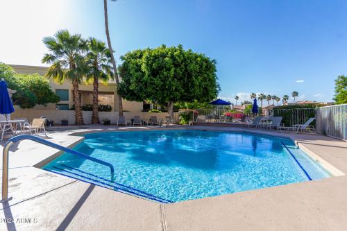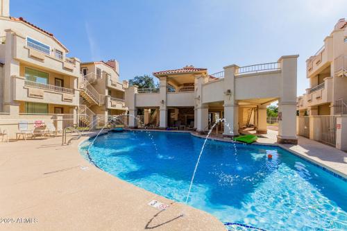 Peaceful, serene living in the exclusive, gated Scottsdale Bay Club within the master-planned lake community of Scottsdale Ranch. Imagine yourself sitting on your private balcony patio with your favorite beverage, overlooking the tranquil lagoon with koi swimming idly by, and the mature trees and green grass of Scottsdale Ranch Park beyond. This 2-bdrm, 2-bath end unit enjoys a rare private entrance, with no neighbors above, and has been meticulously maintained. Enjoy the fresh, neutral paint and modern baseboards throughout. Prepare your favorite meals in the tastefully and recently remodeled kitchen. Luxuriate in the spa-like oversized shower in the newly remodeled master bathroom. Grab a book and read by the fire in the cozy living room or settle in to watch a movie or TV. The generously sized master bedroom has its own balcony with views of the nearby McDowell Mountains. One of the two community pools and spas is just steps away and is situated directly above beautiful Lake Serena. Take a stroll on one of the shaded walking paths nearby. The Mercado shopping center is a short walk away, offering something for everybody. This location is ideal for quick access to numerous medical facilities, shopping, world-class dining, and golf opportunities, the Talking Stick entertainment district, Arizona Diamondbacks and Colorado Rockies Spring Training Baseball, the 101 freeway, and all Scottsdale and surrounding communities have to offer. Don't miss this opportunity to be part of it all!