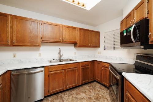 Welcome to this spacious and well-maintained 2-bedroom, 2-bathroom townhouse nestled in the desirable heart of Glendale, AZ. Whether you're a first-time homebuyer, investor, or simply looking for a place to make your own, this move-in ready home is brimming with potential and packed with recent upgrades. Inside, you'll find a fresh, updated look featuring new interior paint, brand-new countertops, an all-new appliance package, brand new window coverings and upgraded hardware and fixtures throughout—bringing a clean, modern touch to the home's original charm. The beautifully renovated master shower, completed within the last year, adds a luxurious feel to your private suite. Major systems have already been taken care of for you, including a brand-new HVAC system, new water heater, and a roof that's approximately two years oldproviding peace of mind for years to come.