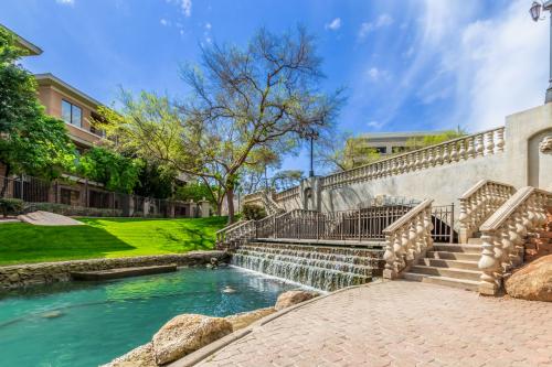 Move-in ready, lock-and-leave living in this gated 'hidden island' community. Enjoy immaculate grounds with waterfalls, koi ponds, indoor lobbies, elevators, clubhouse, fitness center, and private garden areas. The split floor plan offers comfortable living and easy entertaining, plus direct building access to a 2-car tandem garage with plenty of storage. Minutes from groceries, restaurants, schools, and Phoenix Sky Harbor Airport. Low-maintenance luxury in a prime central location.