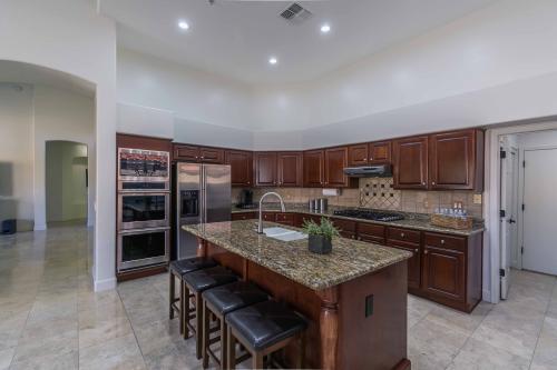 A rare, one-of-a-kind offering in the prestigious Scottsdale Ranch community, this semi-custom residence, one of the last homes to be built in the Ranch, exemplifies luxury desert living at its finest. Thoughtfully designed and well-maintained, this home blends timeless elegance with modern comfort across a spacious floor plan featuring five bedrooms plus a dedicated office, perfect for a multi-generational household. The gourmet chef's kitchen showcases a six-burner gas cooktop, premium appliances, and abundant counter space, ideal for both intimate dinners and grand entertaining. Multiple living areas flow seamlessly to the outdoor retreat, where a resort-style pool and spa invite relaxation beneath the Arizona sun. A private sauna provides a spa-like escape within the comfort of your own home. Recent upgrades include 3 newer AC units and a newer roof with a transferable warranty, ensuring both peace of mind and long-term value. Enjoy the new, neutral colored paint throughout the interior, which leaves one less thing to worry about! The brand new epoxy floor in the garage gives it a fresh look. Nestled within the coveted lake community of Scottsdale Ranch, residents enjoy exclusive access to boating, kayaking, and fishing, as well as a calendar of neighborhood clubs and social events. All this, just moments from world-class dining, premier golf courses, and upscale entertainment. This is more than a home, it's a lifestyle. Discover the rare blend of sophistication, comfort, and resort-style living that defines Scottsdale Ranch.
