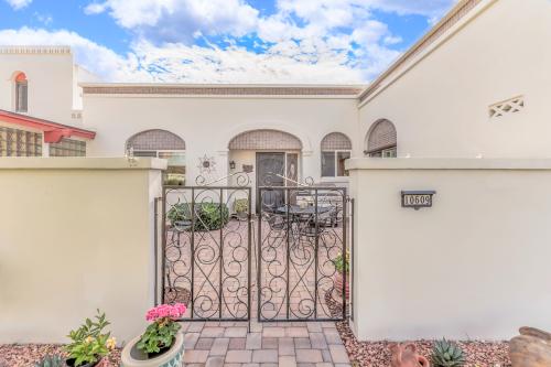 This beautifully updated 2-bedroom, 2-bath townhome offers 1,409 sq. ft. of thoughtfully designed living space, ideal for an active yet relaxed lifestyle. Well-maintained home shows pride of ownership with $65,000+ in improvements!! Remodeled kitchen, engineered hardwood flooring, custom tile, Corian countertops, refaced cabinetry, custom backsplash and upgraded appliances. Additional upgrades include a 2023 water heater with recirculation pump, replaced main sewer line house to street (2025), updated windows, remodeled primary bathroom w walk in shower, updated guest bath, screened AZ room, cobblestone courtyard and upgraded closet design. Large screened-in back patio and large cobblestone front courtyard with private gate. Eat-in kitchen, dining space and spacious living room provide comfortable spaces for both everyday living and entertaining guests. Living room with 3 panel glass doors opens to a private, peaceful backyard patio perfect for morning coffee or unwinding in the evenings.