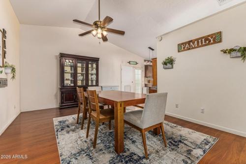 Exterior highlights include a 2-car garage, RV gate, mature landscaping, and a low-maintenance backyard with a covered patio, fenced grassy area, and sparkling pool—perfect for entertaining and Arizona living.