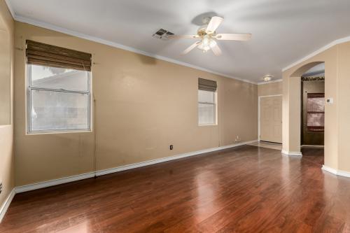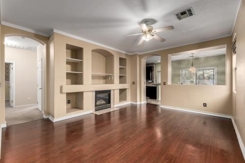 Beautiful Single-Level Home on a Premium Corner Lot with Pool! Situated on nearly a ΒΌ-acre lot, this well-maintained 3-bedroom home with a den offers exceptional indoor and outdoor living. Enjoy an excellent location near community parks, schools, and shopping. Inside, the home features high ceilings and ceiling fans throughout, a spacious great room with gas fireplace, crown molding, and upgraded baseboards. The kitchen showcases ample cabinet space, tile countertops and backsplash, complemented by wood laminate flooring and tile flooring in key areas. The large primary suite includes a bay window, double vanity, walk-in shower, and spacious walk-in closet.