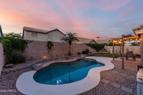 **PRICE REDUCTION**BRAND NEW ROOF**SPARKLING POOL**Granite Counters**Fresh Paint** New Carpet**Roof Installed Just This Week** Be impressed with the gorgeous street appeal - updated landscaping, paver lined drive & turf front yard. Entertain in the living/dining room that opens to the spacious kitchen and family room. Granite counters, stainless appliances & pendant lighting gives a warm welcome. The owner's suite features a bay window, garden tub, dual vanity & walk-in closet with custom shelves. Dig your toes into the new carpet and admire the fresh paint throughout. The oasis backyard features a refreshing play pool, covered patio with Edison lights. There is even a wood burning pizza oven! Let the party begin!! Added insulation and new thermostat provides energy efficiency. High speed Google fiber means you're always connected, great for work and gaming. Walking distance to the elementary school, junior high and playground. Tour today and make this amazing house your new home.