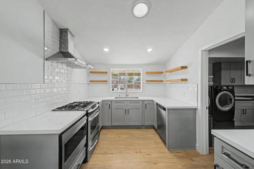 Nestled on a highly desirable corner lot, this gorgeous 4-bedroom home offers the perfect blend of comfort, elegance, and style! From the moment you enter, the spacious living room bathed in natural light greets you. Thoughtful touches include wood-look flooring, vaulted ceilings, fresh paint, and recessed lighting that illuminates every corner. Upscale eat-in kitchen is a cook's delight, boasting subway tile backsplash, stainless steel appliances, sleek quartz counters, and ample cabinets & floating shelves. Impeccable primary retreat continues to impress with plantation shutters, a walk-in closet, and a pristine ensuite with an enclosed glass shower. Generous sized backyard provides a covered patio, storage shed, and mature shade trees. A rare opportunity you won't want to miss!