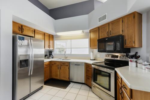Welcome to resort-style living in the guard-gated 55+ community of Sun Village! This beautifully maintained 2-bedroom + den home features an open-concept floor plan designed for comfort and easy entertaining. The spacious primary suite offers a rare private exterior entrance to the covered patio and fenced backyard--perfect for enjoying Arizona's beautiful mornings and evenings. Sun Village offers an unmatched active lifestyle with an array of amenities, including a scenic golf course, sparkling pools, tennis and pickleball courts, lakes, and a vibrant social calendar filled with clubs, events, and activities.